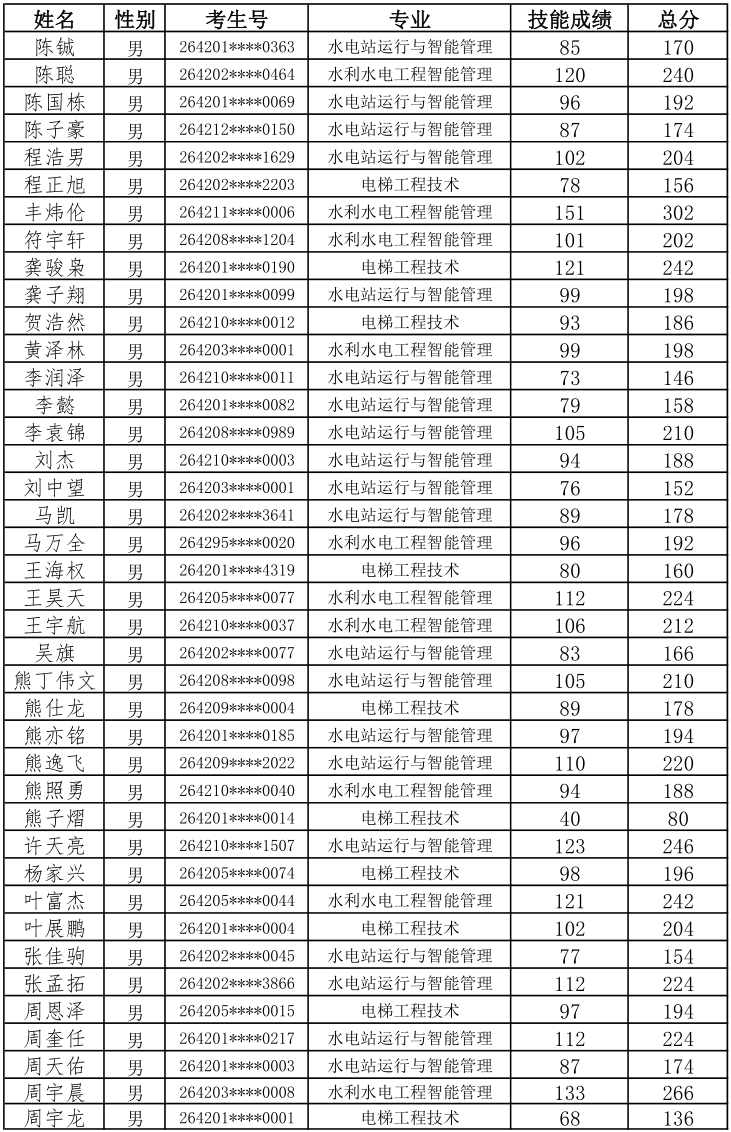 根据《省教育厅关于做好2026年高职单独考试招生工作的通知》文件精神。按照《湖北水利水电职业技术学院2026年高职单独招生章程》中公布的录取标准和录取办法,确定各专业拟录名单并予以公示(按照考生姓名排序)。公示期为4月9日-15日,公示期内如有疑问,及时与我校招毕办联系。经我校公示录取的考生,无须参加后续普通高校招生统一高考或技能高考。最终录取结果以省招办审核通过的名单为准。咨询电话:027-87378093 ,监督电话:027-81299018。